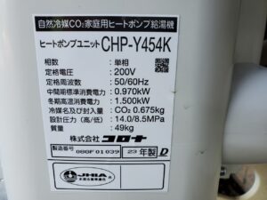 羽後町 コロナ自然冷媒CO2家庭用ヒートポンプ給湯機 ヒートポンプユニットCHP-Y454K エコキュート交換工事