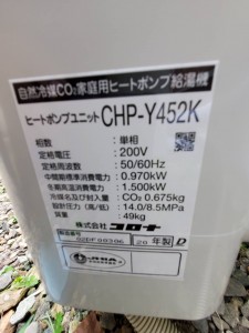 秋田市 コロナ自然冷媒CO2家庭用ヒートポンプ給湯器貯湯ユニットCTU-37AY2K、ヒートポンプユニットCHP-Y452K